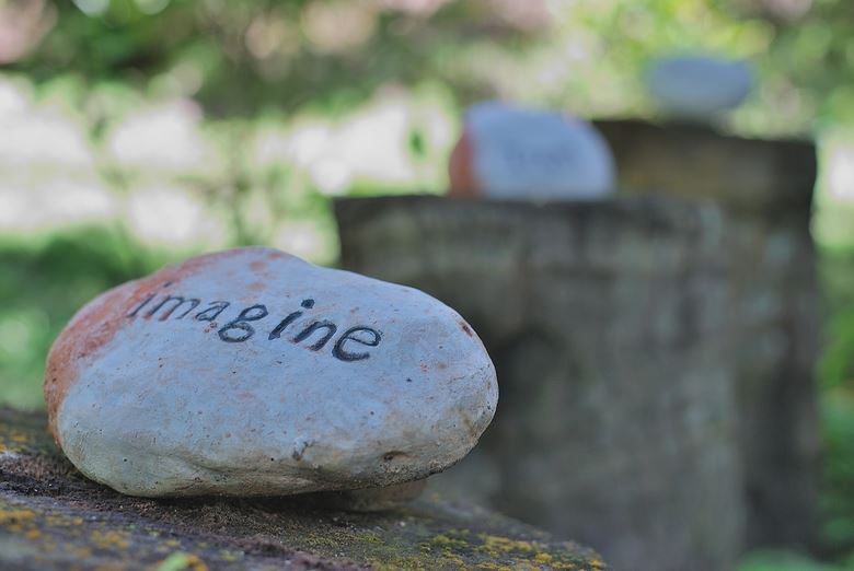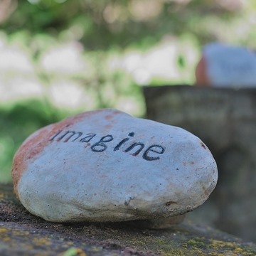 *Sandy concentric circles around a large stone are shown in low light conditions. Lateral light creates a shadow from the stone. The sandy circles look like orbits of the planets around the sun. There is an atmosphere of calm, tranquility and the infinity of space, image of the universe on the sand.